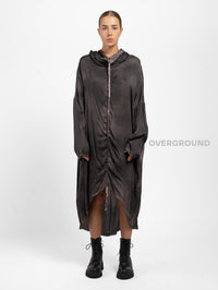 Abito lungo over con ripresa centrale e tasche laterali in tessuto sfumato a mano