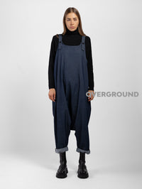 Salopette oversize in jeans a cavallo basso con tasche laterali