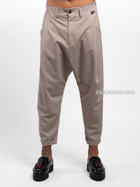 Pantalone cavallo basso con pieghe davanti, tasche laterali e dietro, cinturino in vita