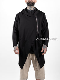 Felpa con cerniera asimmetrica, tasche frontali e spacco frontale