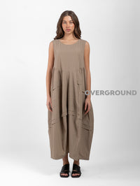 Abito over smanicato, con balze davanti e tasche laterali