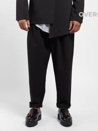 Pantalone largo con pens davanti, cinturino e tasche laterali