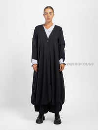 Spolverino over scollo a v, ripreso in fondo e tasche laterali