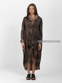 Long oversized dress with central dart and side pockets in hand-shaded fabric