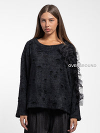 Blusa over con piccoli intarsi davanti e rosa laterale